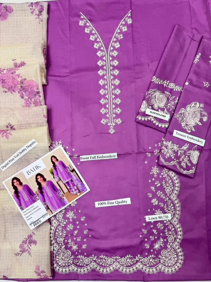 Make your Summer wardrobe truly unforgettable with the Batik 3 Piece Lawn embroidered dress. Add this luxurious yet practical choice to your collection today and embrace the season in style!