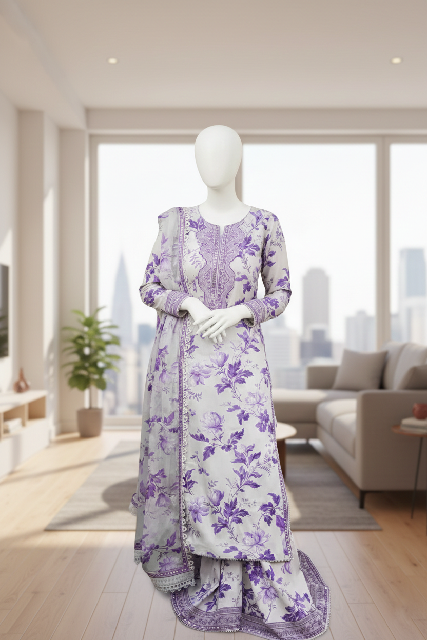 Crafted from high-quality lawn fabric, this collection ensures breathability and comfort, making it ideal for the warm summer months. Each piece is lovingly printed with intricate patterns that capture the essence of sophistication. The softness of the lawn material feels gentle against the skin, allowing for all-day wear without compromise. Pair it with the matching lawn dupatta for a complete look that’s sure to turn heads.