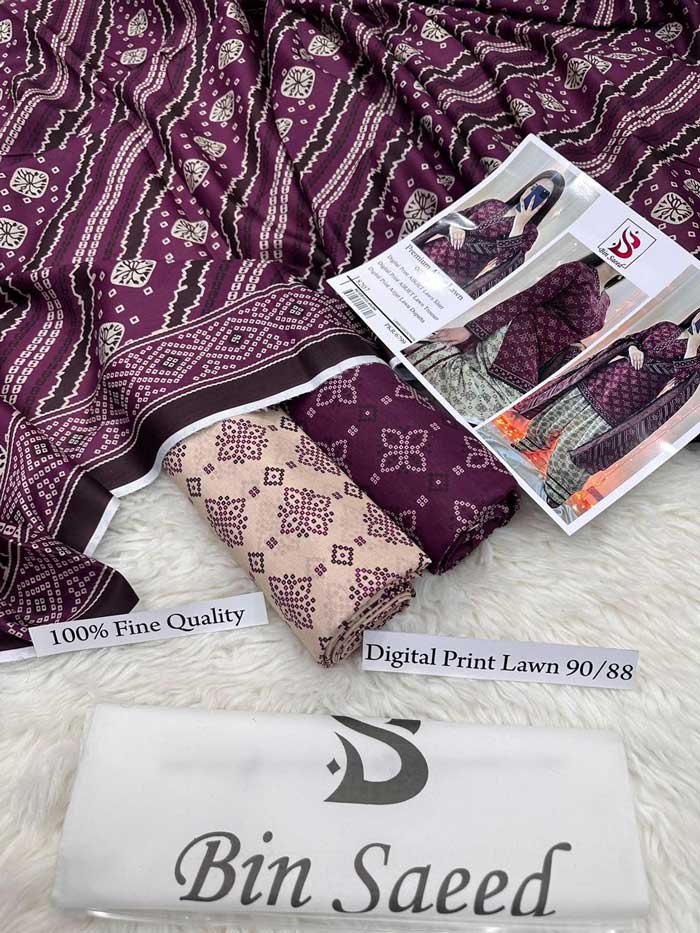 Bin Saeed By Libas e Khas Store 3pcs Unstitched Digital Printed Summer Lawn Suit