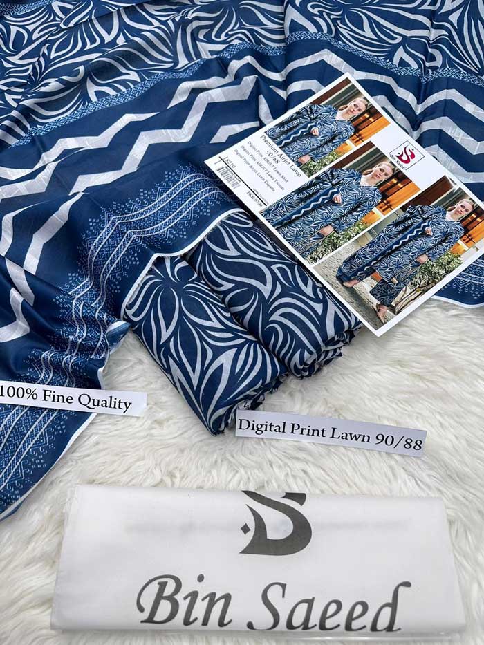 Bin Saeed By Libas e Khas Store 3pcs Unstitched Digital Printed Summer Lawn Suit