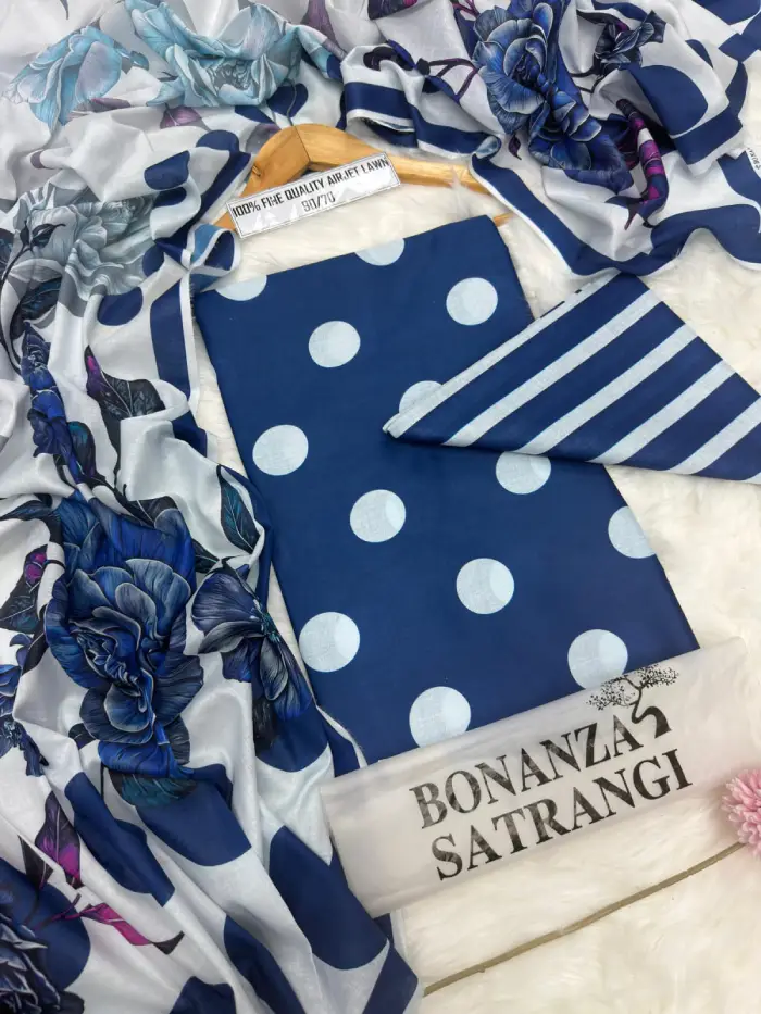 Each piece of the Bonanza Satrangi Lawn Collection features intricate digital prints that are not only visually appealing but also created using high-quality materials that are soft on the skin. The lightweight fabric is breathable, making it the ideal choice for those hot summer afternoons. With its unique patterns and color combinations, this lawn suit is designed to make you stand out at any event, be it a casual outing or a special celebration.