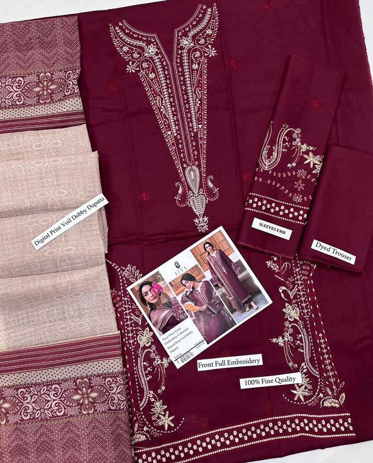 Izel 3pcs Unstitched Embroidered Summer Lawn Suit
