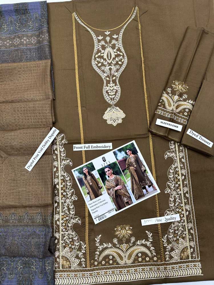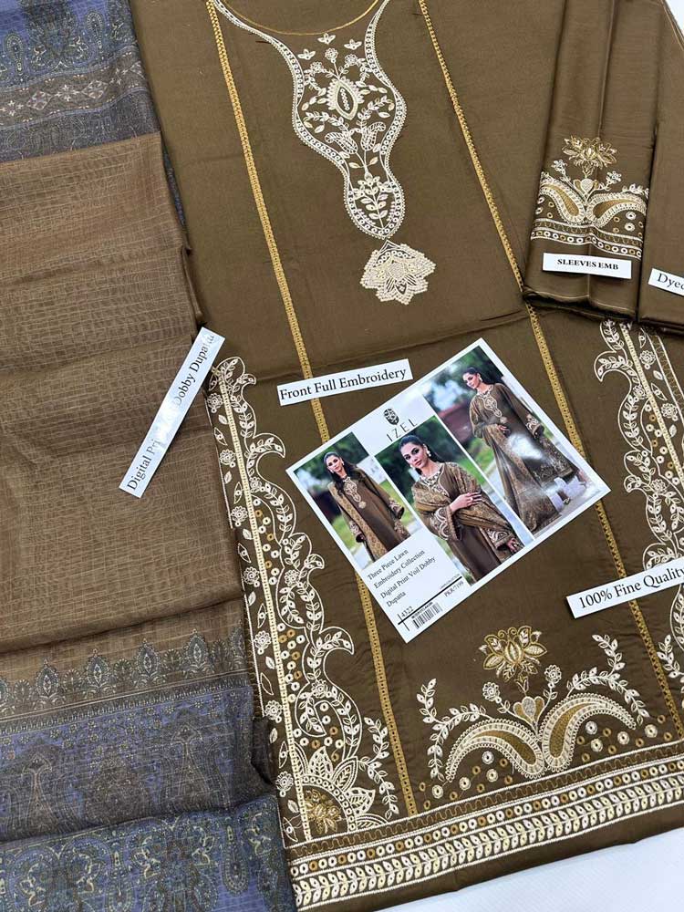Izel 3pcs Unstitched Embroidered Summer Lawn Suit