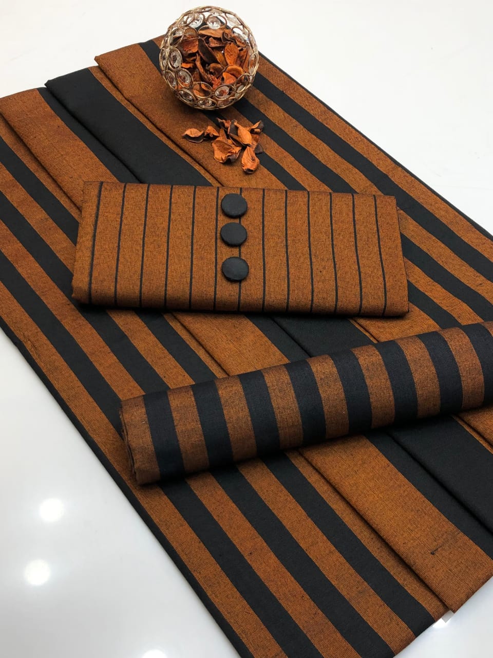 Multani Khaddi Susi is a handwoven (handloom) cotton fabric originating from Multan, a city renowned for its indigenous craftsmanship, pottery, Ajrak, and textile heritage. The word “Khaddi” refers to the manual handloom machine used to weave the fabric, while “Susi” refers to the soft, striped cotton weave known for its airy feel and distinctive pattern.
