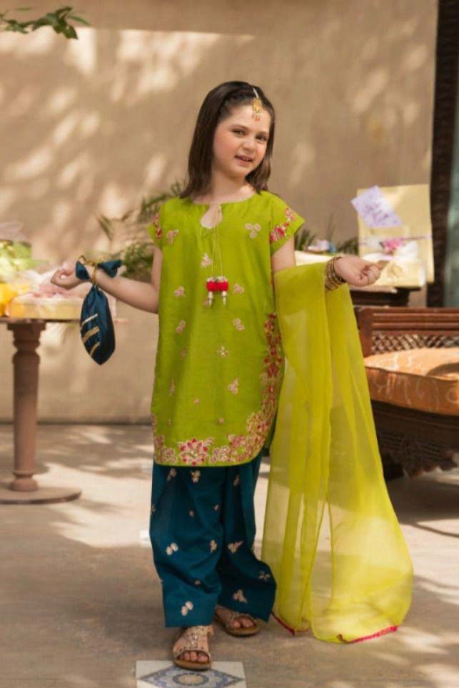 Mariab Kids 3pcs Embroidered Lawn Suit with Net Dupatta