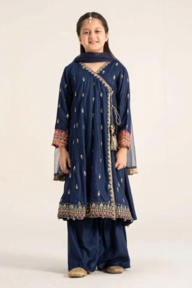 Mariab Kids 3pcs Embroidered Lawn Suit with Net Dupatta