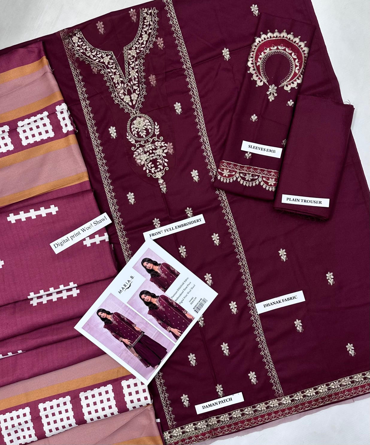 The Mariab Dhanak Premium 3pcs Embroidered Winter Collection for 2025 epitomizes elegance and sophistication, showcasing a seamless blend of tradition and modern aesthetics. The collection draws inspiration from the vibrant essence of Winter , reflecting the beauty of nature through its design elements. Each piece is meticulously crafted, featuring intricate embroidery that stands out, ensuring that these garments are not only stylish but also a testament to the brand’s dedication to quality.