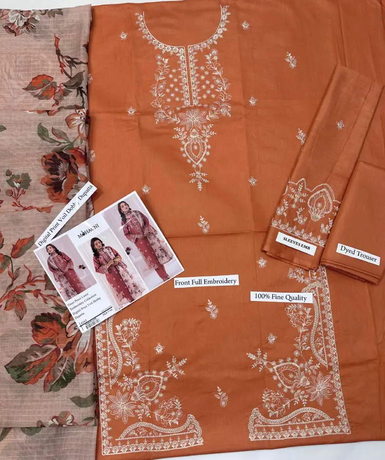 This premium 3-piece suit isn’t just about aesthetics—it’s a celebration of comfort and practicality. The breathable and durable Lawn fabric ensures that you stay cozy yet stylish, while the Dobi Voil Dupatta ‘s intricate digital print makes layering a breeze. The design caters to women who value timeless pieces that seamlessly transition from day to evening wear.