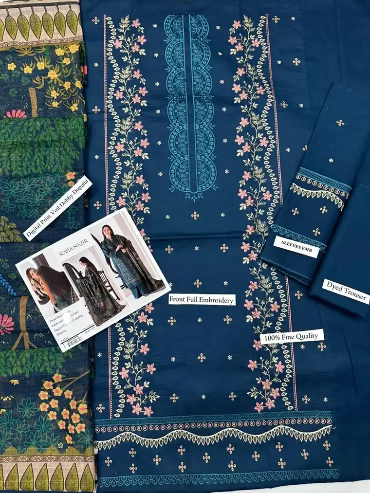 Redefine your Summer style with the Sobia Nazir Lawn embroidery collection featuring a luxurious 3-piece set designed to elevate your seasonal wardrobe. Combining exquisite embroidered details with a digitally printed Lawn wool Dobi Voil Lawn Dupatta , this collection seamlessly blends traditional artistry with modern sophistication. Whether you’re attending festive gatherings or simply looking to feel confident in your daily wear, this Summer ensemble delivers style and comfort in one package.