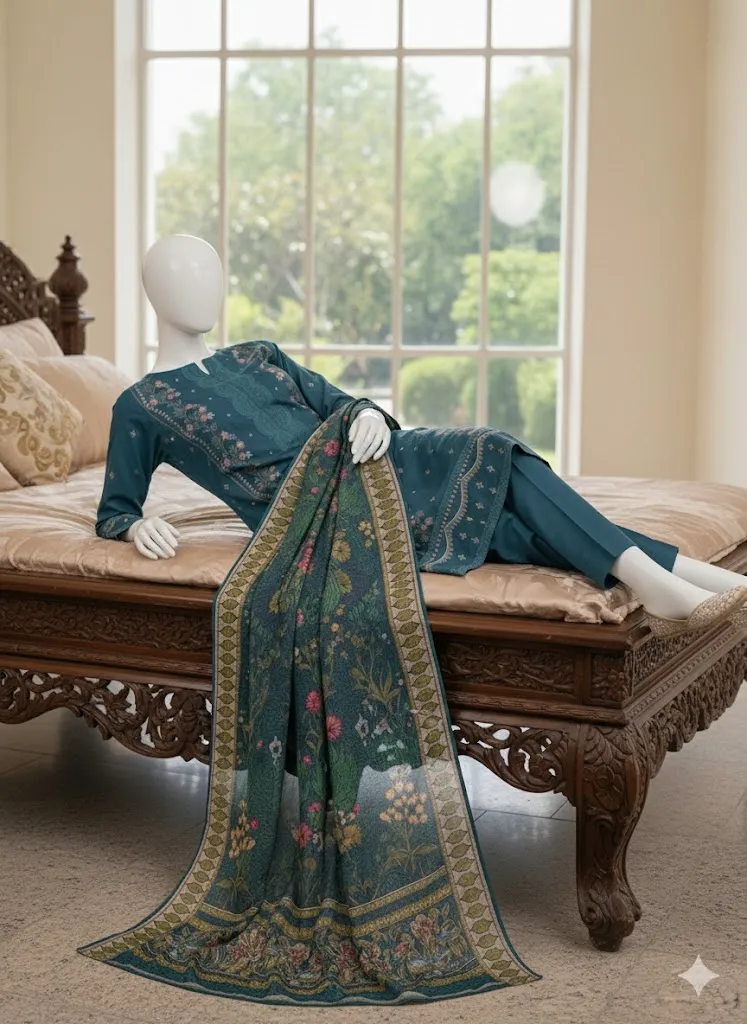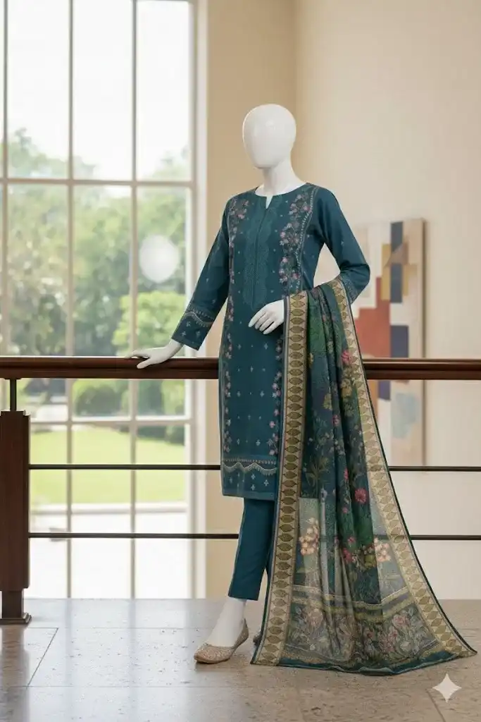 This collection is designed to offer versatility, accommodating both formal and casual occasions effortlessly. The embroidered shirt creates a striking statement, while the matching trouser ensures a polished appearance. The highlight of the ensemble lies in the vibrant, digitally printed Lawn wool Dobi Voil Lawn Dupatta , which serves as a fashionable layer to combat the Summer chill. Pair this set with your favorite accessories to personalize your look and stand out wherever you go.