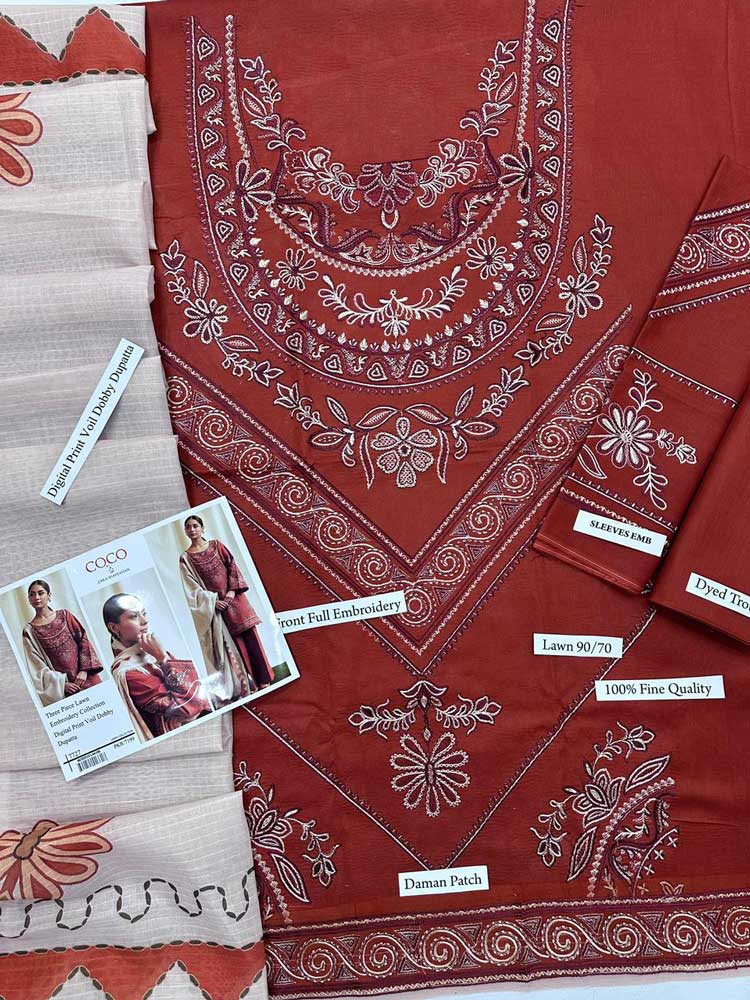 The centerpiece of this collection is the intricately embroidered suit, featuring fine detailing on its luxury fabric that exudes refinement. The Lawn embroidered shawl is the star of the attire, combining modern embroidery techniques with cultural patterns that add depth and character to the overall look. Perfect for semi-formal and formal Summer gatherings, this design captures the essence of effortless beauty. Whether you’re attending a family celebration or a special event, this ensemble will make heads turn.