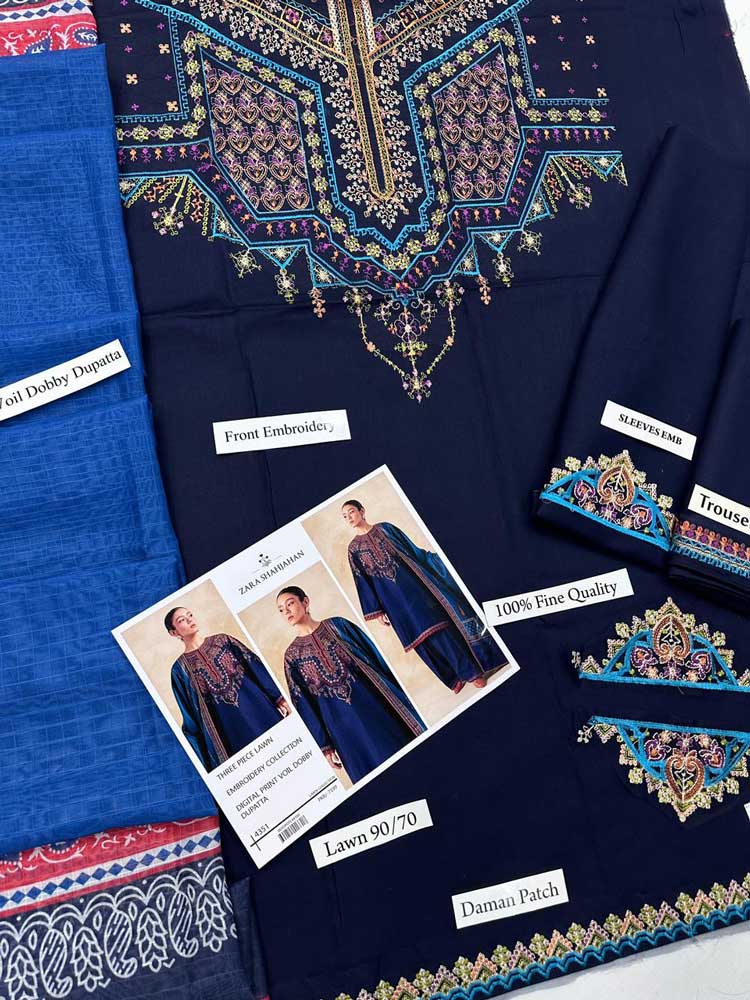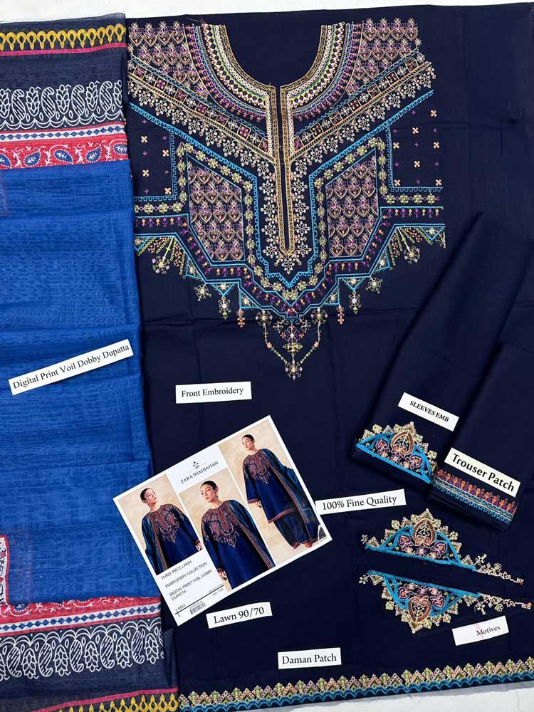 Zara Shahjahan is widely recognized for its commitment to quality, creativity, and distinctiveness. The Summer Lawn Collection 2026 continues this legacy, offering garments that reflect meticulous attention to detail. Made with premium fabrics, this 3-piece set includes a comfortable suit, a matching embroidered shawl, and a coordinated outfit that ensures versatility and a polished look. Embrace the charm, stay on-trend, and enjoy the cozy elegance this collection brings to your Summer wardrobe.