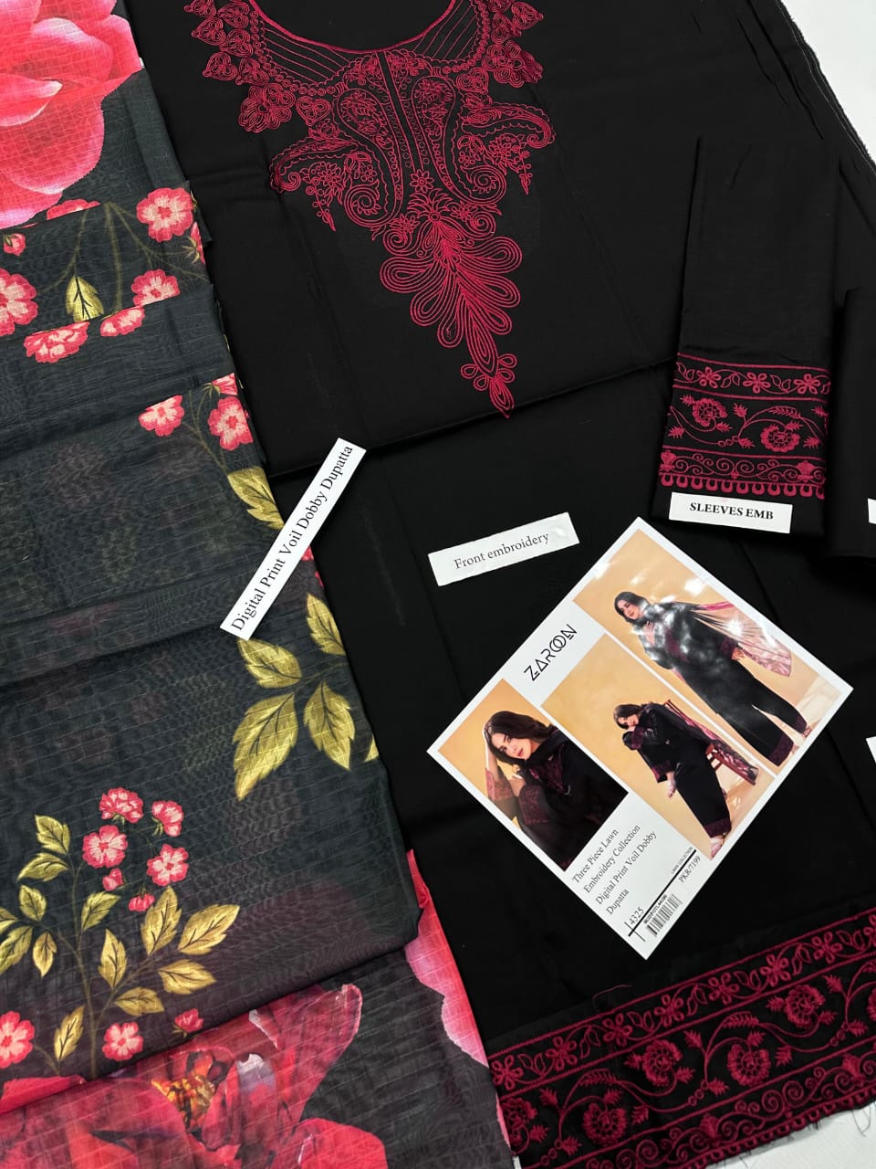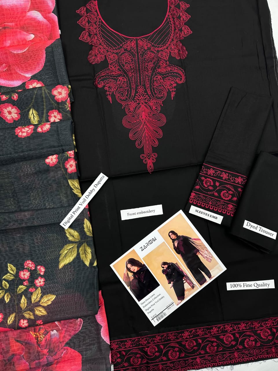 The 2026 Zaroon series is defined by its attention to detail and artistic flair. Each unstitched 3-piece suit is meticulously crafted to offer: